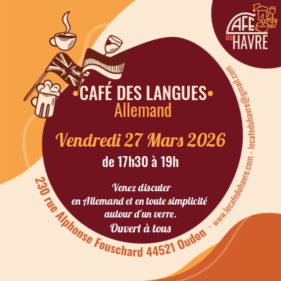 Depuis le mois de janvier 2026, le Comité de jumelage propose un Café en ALLEMAND en partenariat avec Le Café du Havre.