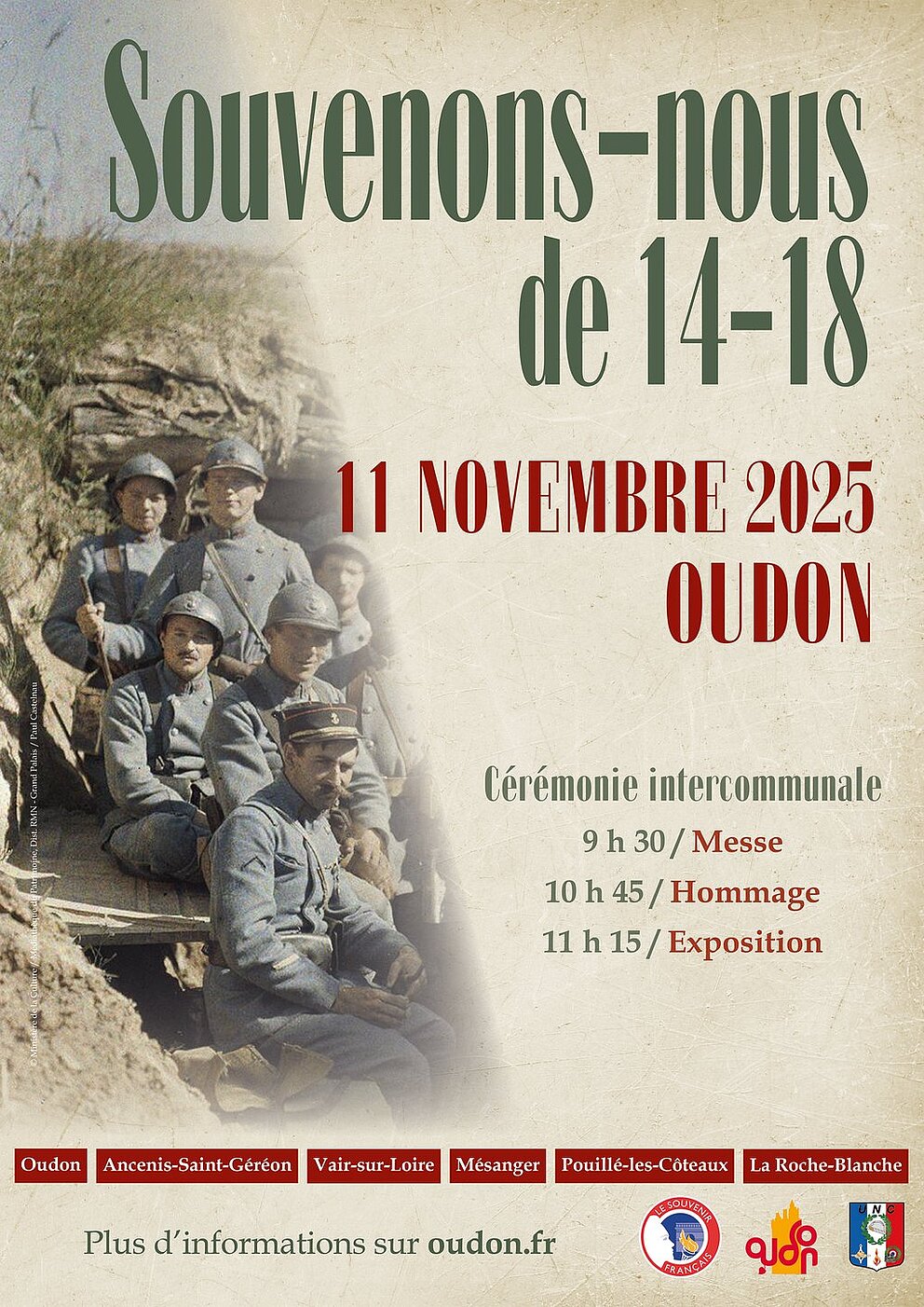 Depuis 2014, les communes de l’ancien Syndicat intercommunal à vocation multiple (Sivom) du canton d’Ancenis (Oudon, Mésanger, Ancenis-Saint-Géréon, Vair-sur-Loire, Pouillé-les-Coteaux et La Roche-Blanche) se rassemblent à tour de rôle pour commémorer l’armistice du 11 novembre 1918. Cette année, la commémoration cantonale se déroulera à Oudon.