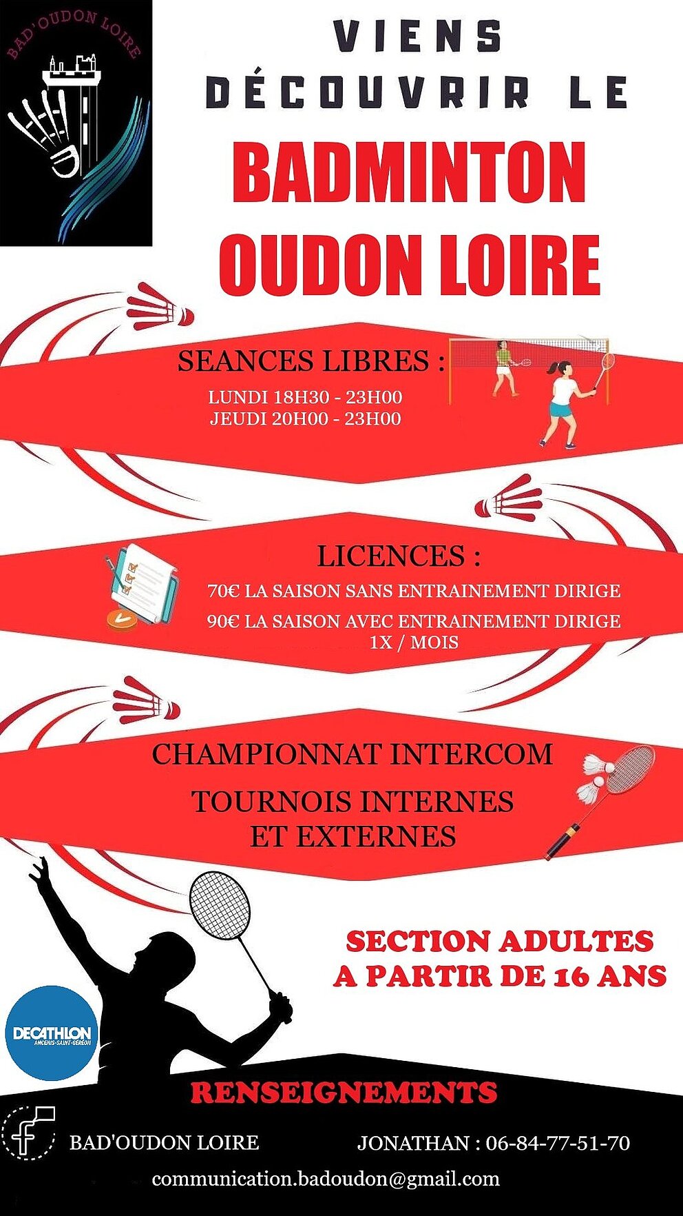 Inscriptions badminton adultes loisirs Bad'Oudon Loire