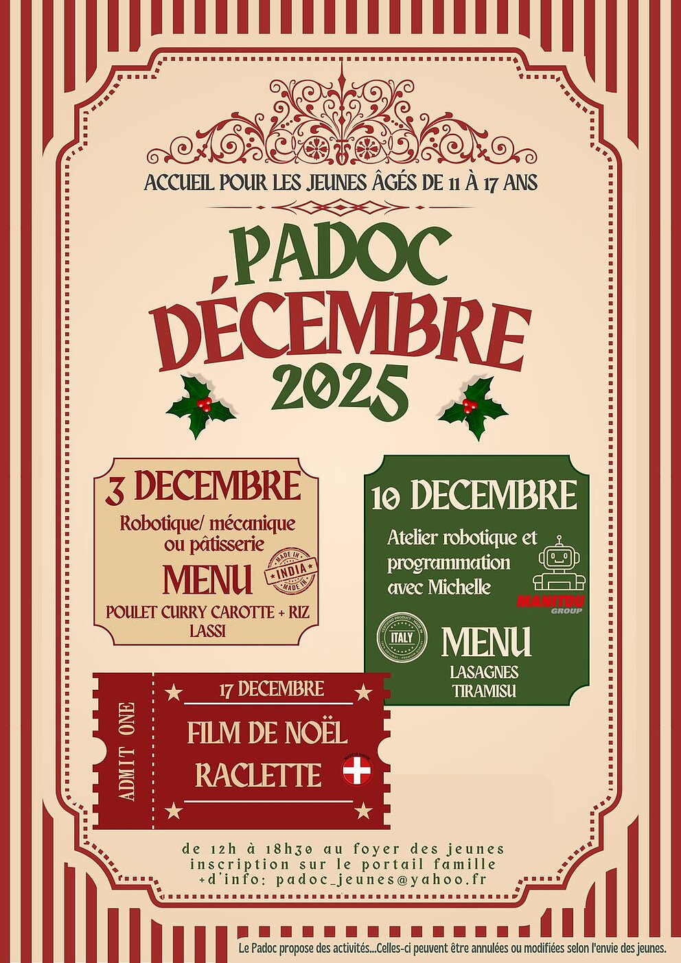 Padoc accueil 11-17 ans: programme de décembre 2025